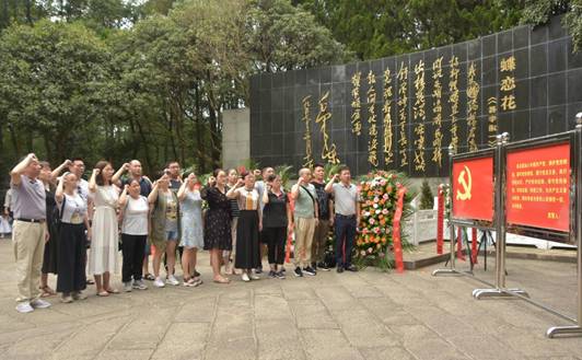 在杨开慧陵园前,全体党员庄严肃立,向烈士默哀、三鞠躬,表达深切的缅怀之情。“我志愿加入中国共产党……为共产主义奋斗终身,随时准备为党和人民牺牲一切,永不叛党!”面对鲜红的党旗重温入党誓词,更加坚定了大家身为一名共产党员的信仰。